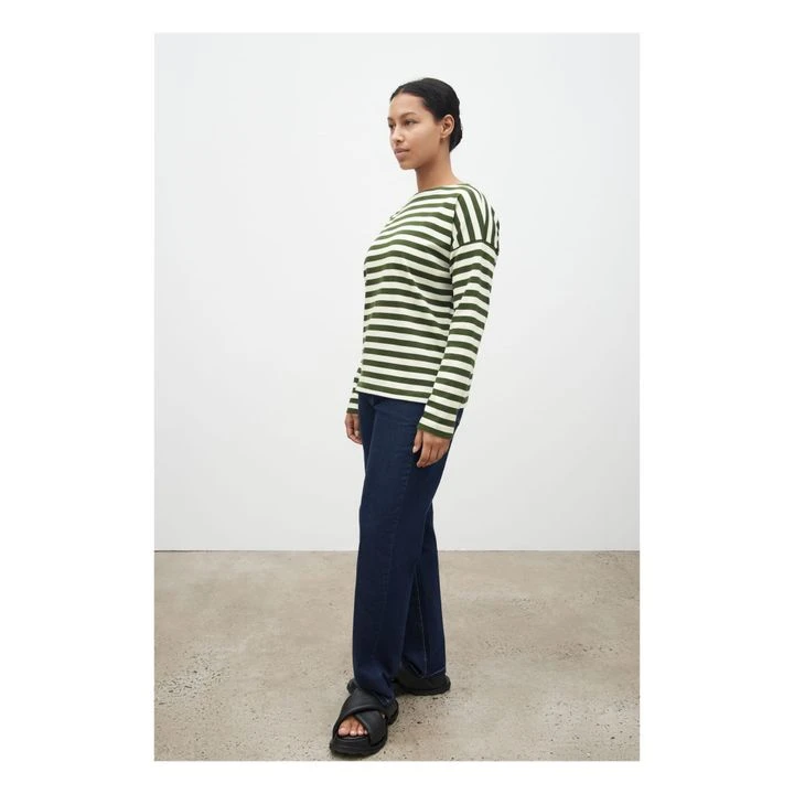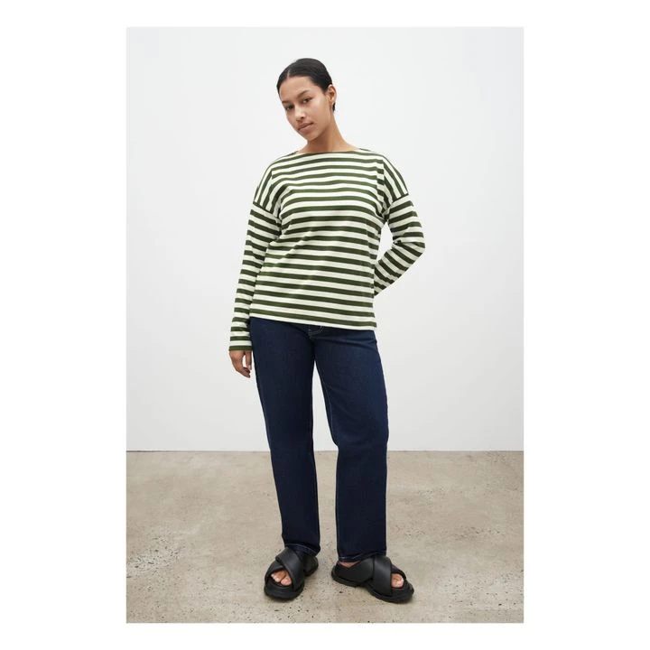 Breton Organic Cotton Slash Neck Sweatshirt | Dark Green